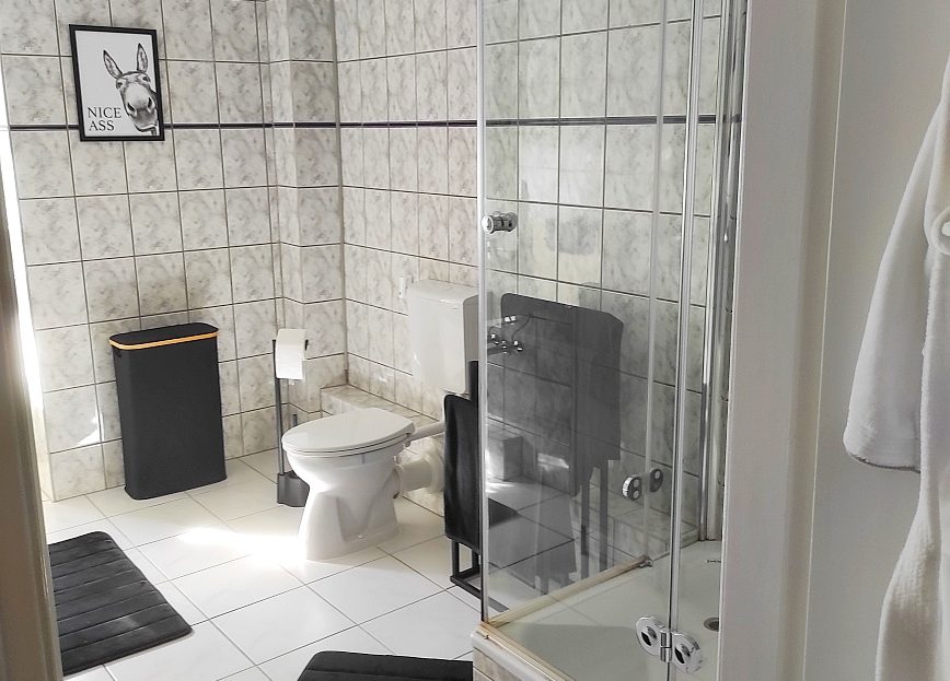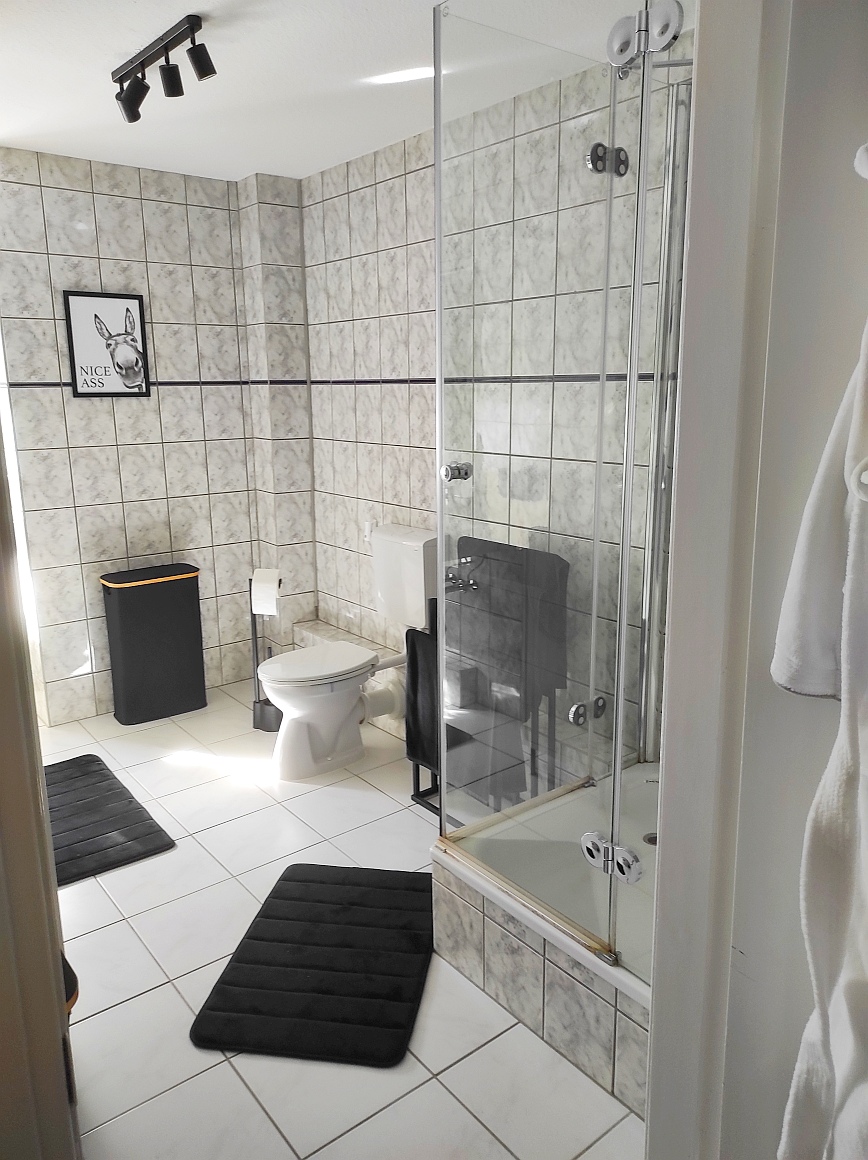 Ein Küchenzeile (Einbauküche von 2025) ist vorhanden, das Bad ist ein Duschbad.