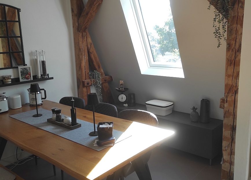 Sie besteht aus 4,5 Zimmern, die teilweise gemütliche Schrägen haben.