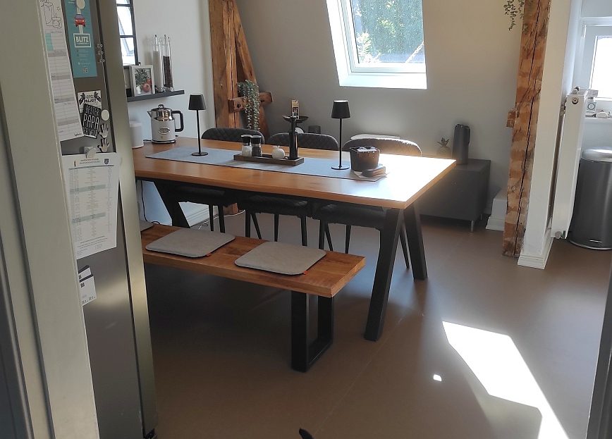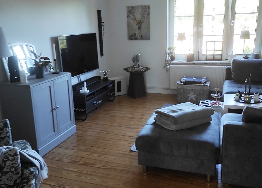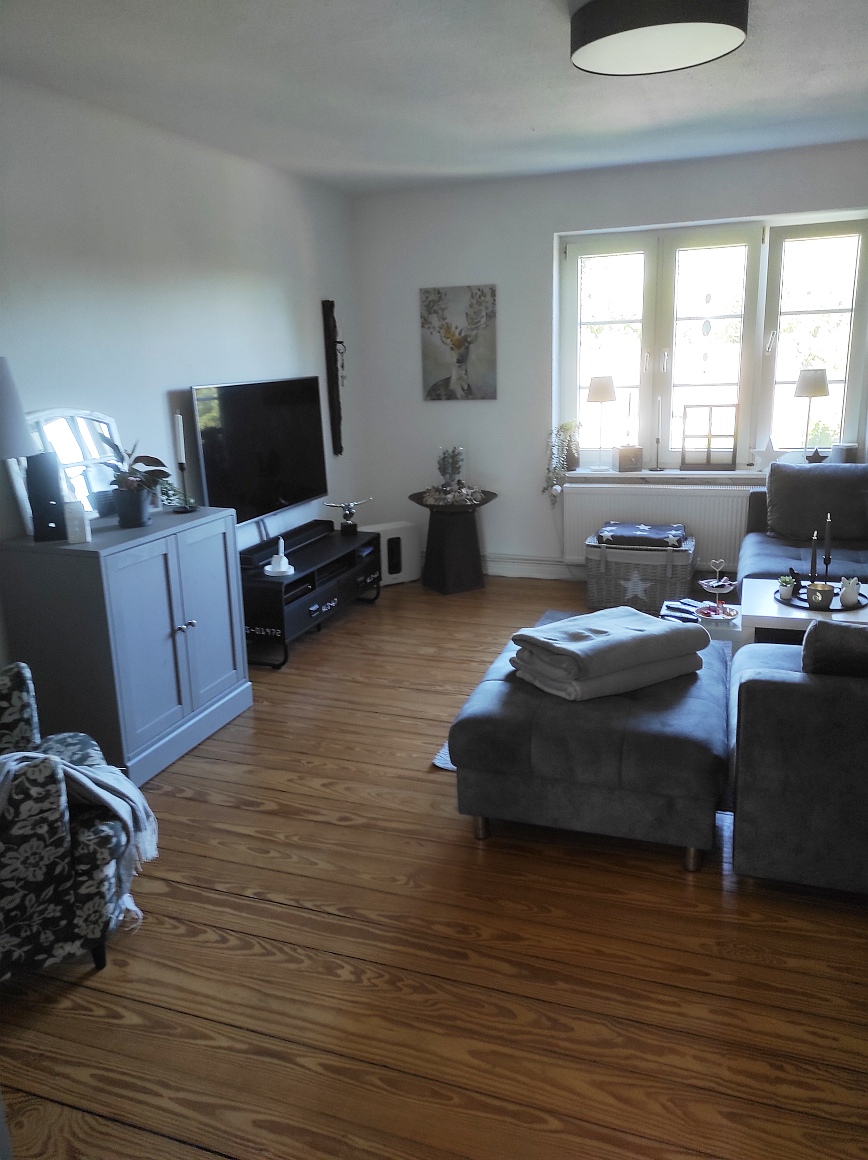 Die Wohnräume haben alle Echtholz-Plankenböden, das Bad ist gefliest.
